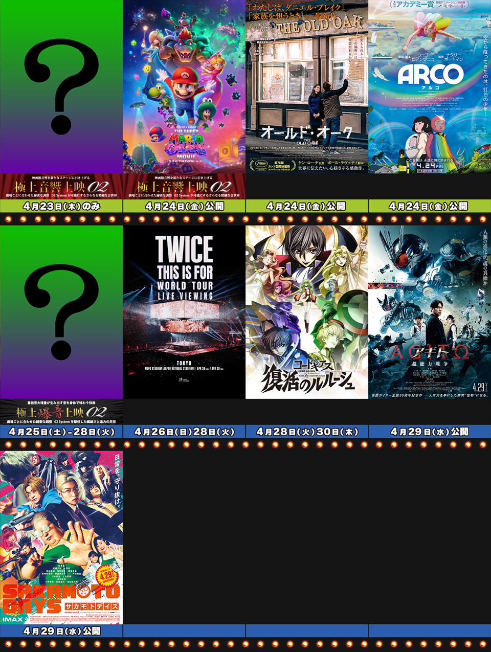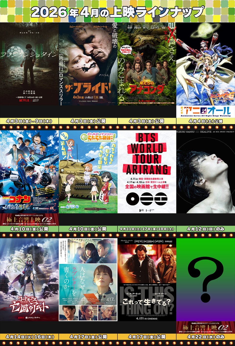 『名探偵コナン ハイウェイの堕天使』『ザ・スーパーマリオギャラクシー・ムービー』というG.W.2大巨頭があるため、上映作品数が少ない4月。