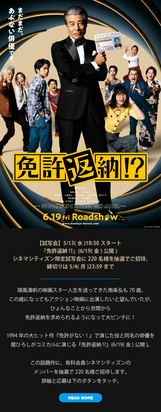 3. 2026年5月のラインナップ/シネマシティズン限定試写『免許返納!?』